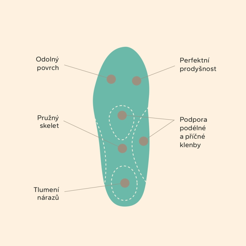 ● latexový vankúšik v päte tlmí nárazy na pätnú kosť